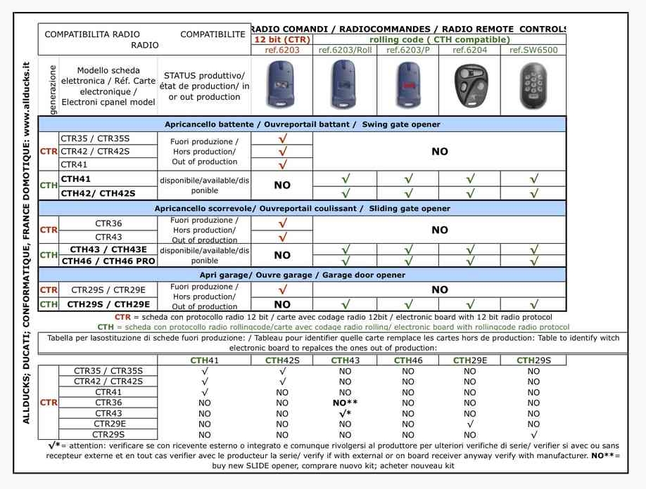 Attention: en cas d'utilisation avec automatisme pour portail battant avec carte CTH42S ou automatisme pour portail coulissant avec carte CTH43. Il est nécessaire d'utiliser aussi l'accessoire C/M/BAT (chargeur de batterie).