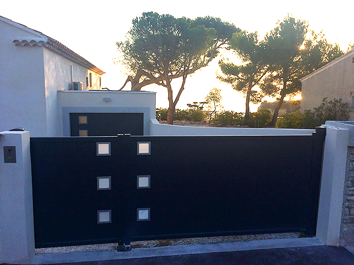 Nous fabriquons sur mesure et en standard des portails automatiques avec le portillon et/ou les modules de clôture assortis en aluminium pour résidences de particuliers ou locaux industriels. Livraison assurée partout en France et Belgique